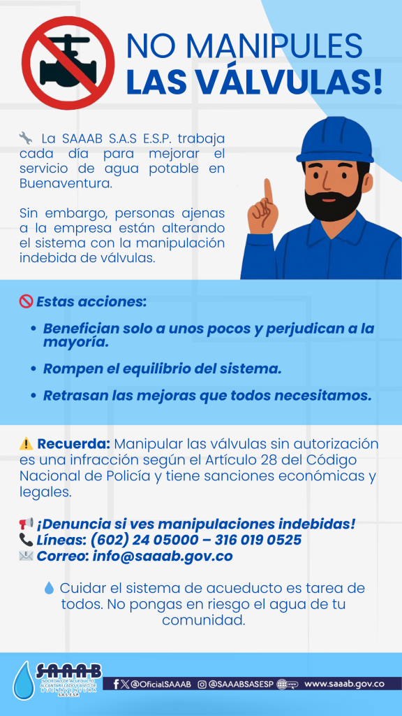La manipulaci贸n indebida de v谩lvulas afecta el equilibrio del sistema de acueducto, perjudica a la comunidad y retrasa las mejoras del servicio.