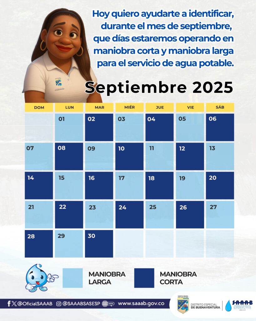 📆📌 Identifica durante los días del mes de septiembre cuando estaremos operando en maniobra corta y maniobra larga para el suministro de agua potable.