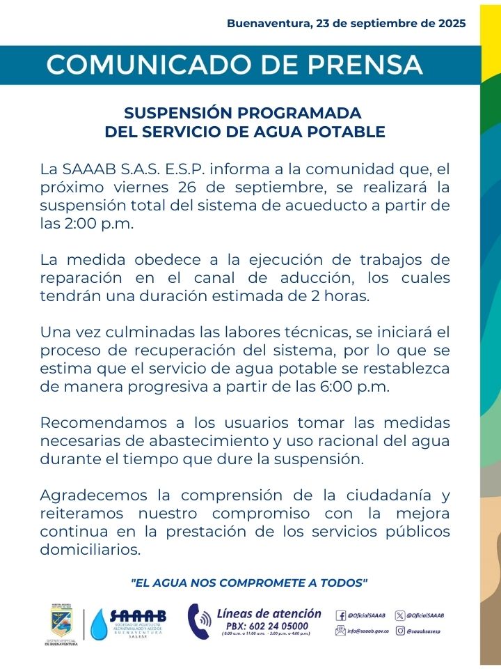 por Editor Noticias | Sep 23, 2025 | Suspensión programada del servicio | 0 Comentarios