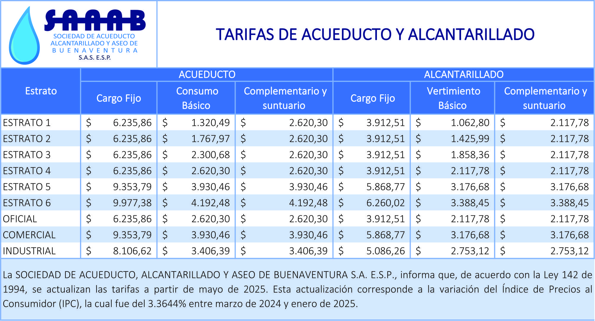 * Tarifas de Acueducto y Alcantarillado